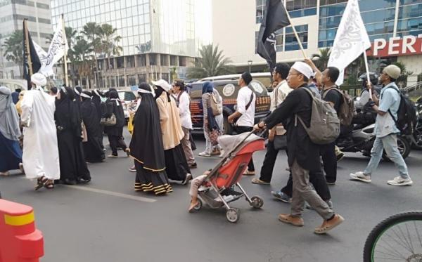Pantauan di lapangan, massa unjuk rasa Aksi Mujahid 212 datang bergelombang sejak pagi. Semakin siang, massa semakin banyak. Tidak hanya kalangan pria dan perempuan dewas, remaja juga berjubel mengikuti aksi ini.