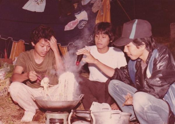 Jokowi kemudian memposting fotonya sedang memasak bersama dua orang temannya saat berada di gunung.