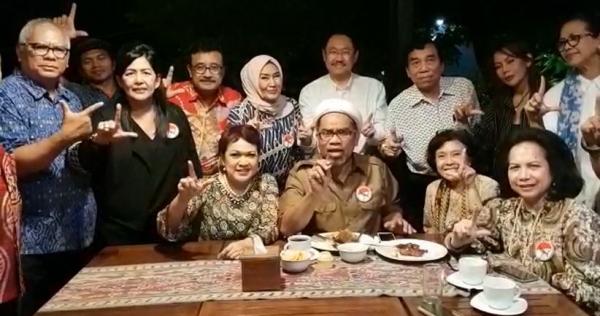 Mereka mengenakan pin dukungan kepada Jokowi. Sambil menunjukkan jari berbentuk simbol L, Ngabalin dan alumni UI menyerukan slogan Lanjutkan, Lawan, Libas.