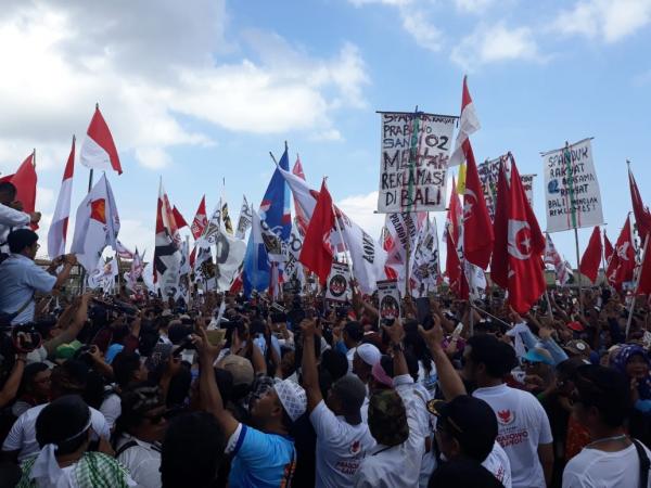 “Kalau kita disakiti, kita kesatria, kita tegar, kita tabah, kita membalas dengan budi pekerti kita. Dicaci-maki balas dengan senyum,” kata Prabowo saat menyapa ribuan pendukungnya dalam kampanye akbar di Lapangan Kapten Kompnyang Sujana Denpasar, Bali, Selasa (26/3/2019).