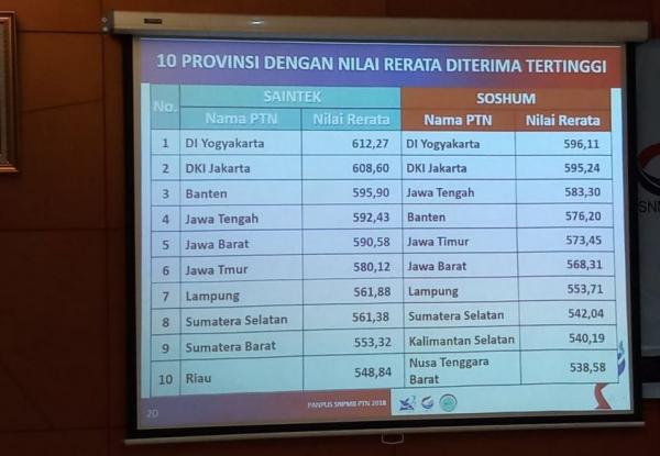 Daftar 10 Provinsi dengan Nilai SBMPTN 2018 Tertinggi, Yogya Nomor 1