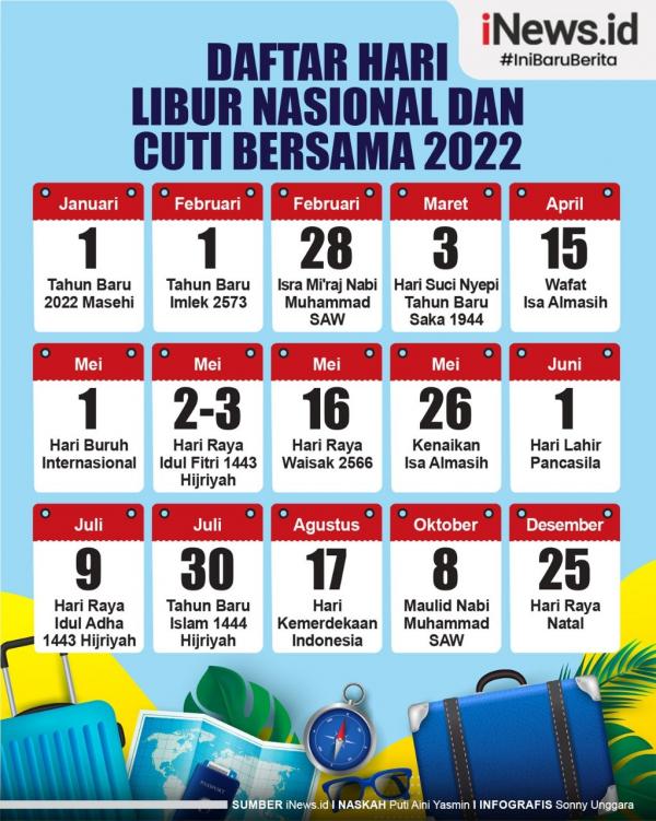 Daftar Hari Libur Nasional Tahun 2022 dan Cuti Bersama