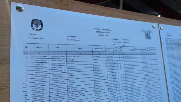 Nama Presiden ke-5 tercatat sebagai Hj Megawati Taufiq tercatat di nomor urut 1 pemilih di TPS 62 RT 010/04, Kebagusan, Pasar Minggu, Jakarta Selatan, Rabu (17/4/2019). (Foto: Riyandy Aristyo)
