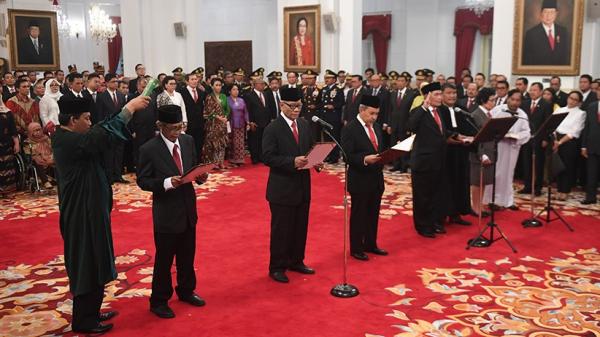 Sebelumnya, Presiden Jokowi menyaksikan pengucapan sumpah lima orang anggota Dewan Pengawas KPK 2019-2023. Mereka yakni Syamsuddin Haris, Artidjo Alkostar, Albertina Ho, Harjono dan Tumpak Hatorangan Panggabean di Istana Negara.