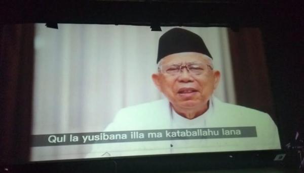 Mantan Rais Aam PBNU ini juga membacakan doa kepada seluruh masyarakat yang tertimpa bencana agar dapat diberikan keringanan serta kemudahan dalam menjalani kehidupan. Dalam doanya Ma'ruf juga menumbuhkan semangat korban bencana agar bangkit kembali.