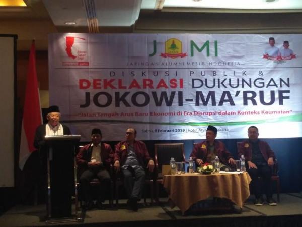 JAKARTA, iNews.id – Suntikan dukungan kepada pasangan capres dan cawapres Joko Widodo (Jokowi)-Kiai Ma’ruf Amin datang dari Jaringan Alumni Mesir Indonesia (JAMI). Visi dan misi pasangan nomor urut 01 dinilai sejalan dengan cara pandang JAMI.