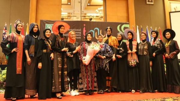 Forum perempuan internasional Fatayat NU diisi dengan penampilan peragaan busana muslimah, Jumat (26/10/2018). Acara ini disambut antusias para peserta. (Foto: Istimewa).