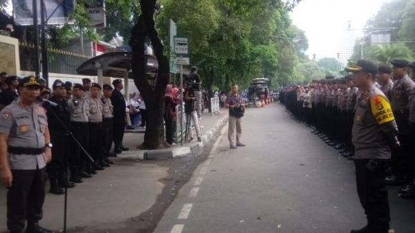 Pantauan iNews.id, aparat kepolisian telah menggelar apel pasukan pada sore tadi. Jalan Imam Bonjol, Jakarta Pusat, tepatnya di depan kantor KPU, telah ditutup untuk umum.