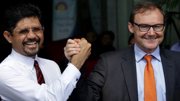 Laode M Syarif dan Wakil Dubes Inggris untuk RI Rob Fenn. (Foto: Antara).