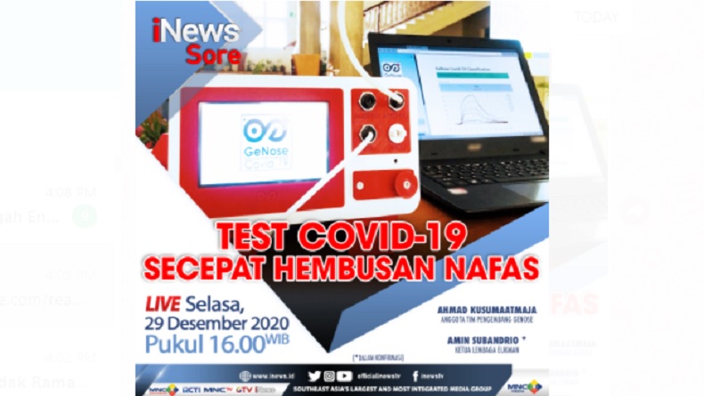 Benarkah alat ini lebih canggih dan lebih murah dari yang sudah beredar? "iNews Sore" akan membahasnya secara mendalam bersama Anggota Tim Pengembang GeNose Ahmad Kusumaatmaja dan Kepala Lembaga Biologi Molekuler Eijkman Amin Subandrio.
