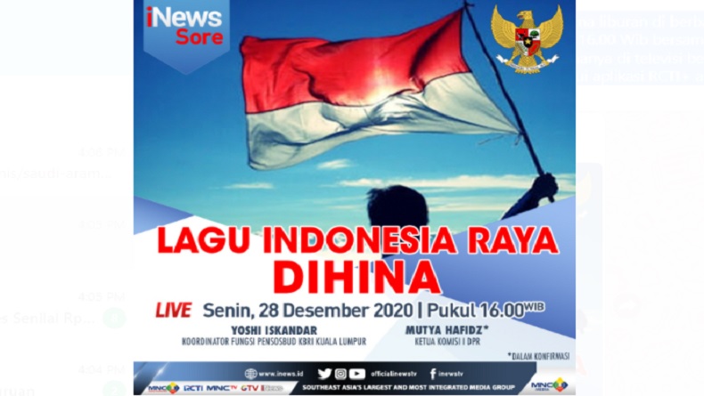 "iNews Sore" Live di iNews dan RCTI+ Senin Pukul 16.00: Lagu Indonesia Raya Dihina