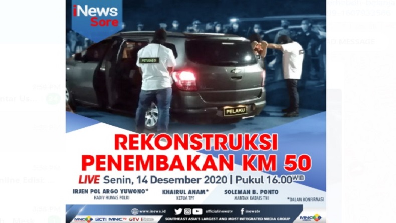 Isu ini menjadi berita utama sekaligus menjadi bahasan dalam dialog "iNews Sore" dengan tajuk "Rekonstruksi Penembahan KM 50", hari ini. Dialog ini akan dipandu oleh Anisha Dasuki dan Fandi Hasib.