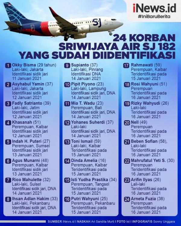 Ini 24 Korban Sriwijaya Air SJ 182 yang Sudah Diidentifikasi