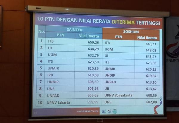 Berikut adalah daftar 10 PTN dengan nilai rata-rata SBMPTN tertinggi tahun ini: