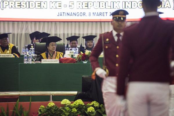 Rektor IPDN Ermaya Suradinata saat mengawali prosesi pemberian gelar doktor kehormatan itu menuturkan, sivitas akademika telah mempelajari nilai dan mempertimbangkan gagasan, semangat, dan jasa Megawati selama menjabat sebagai presiden kelima RI terutama terkait kebijakan strategis politik pemerintahan.