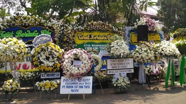 Sepanjang jalan menuju rumah duka juga dihiasi karangan bunga ucapan duka cita dari para tokoh dan pejabat pemerintahan. Sejumlah di antaranya dari Presiden Joko Widodo (Jokowi) dan Wakil Presiden Jusuf Kalla.