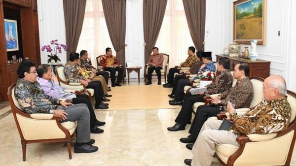 Pimpinan MPR bertemu Wakil Presiden Jusuf Kalla (JK) di rumah dinas wakil presiden, Jakarta, Kamis (17/10/2019). (Foto: Istimewa).