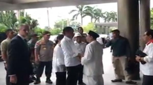 Dalam sebuah ruangan di hotel tersebut, Jokowi berbincang santai dengan Mbah Moen dan Habib Luthfi. Setelah berbincang, Mbah Moen kemudian memberikan serban hijau dan menunjukkan cara memakainya. Jokowi kemudian memakai serban tersebut ke leher.