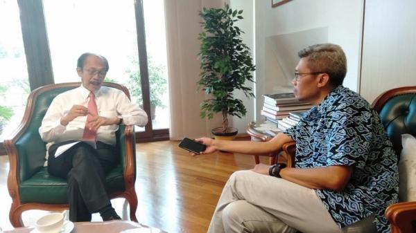Dubes Indonesia untuk Takhta Suci Vatikan Agus Sriyono saat diwawancarai jurnalis iNews.id Eko Ardiyanto di KBRI Vatikan, Rabu (4/9/2019). KBRI berkoordinasi dengan Takhta Suci Vatican untuk persiapan pelantikan Mgr Ignatius Suharyo sebagai Kardinal dari Indonesia. (Foto: IST)