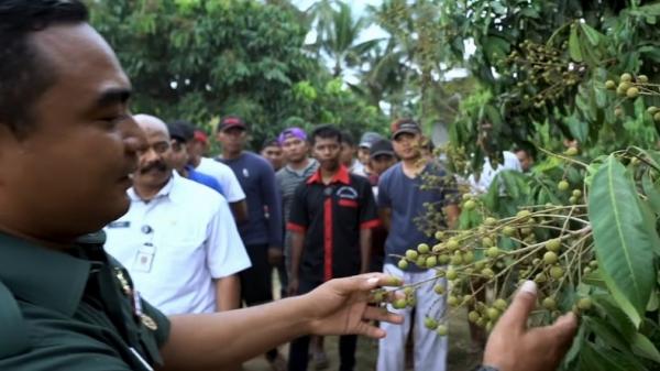 Anggota Koramil 19/Borobudur Kopral Mugiyanto menunjukkan buah kelengkeng di lahan pertaniannya, Rabu (14/11/2019). (Foto-foto: Dispenad).