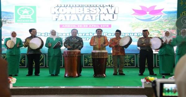 Acara Konferensi Besar XVI Fatayat NU resmi dibuka oleh Menristekdikti didampingi Ketua PBNU, Ketua Umum Fatayat NU, dan Pelaksana tugas (Plt) Gubernur Maluku Zeth Sahuburua dengan bersama-sama menabuh alat musik tifa, seni khas musik dari Ambon.