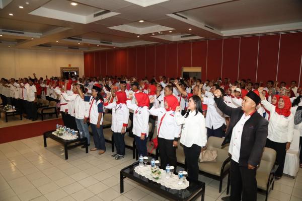 “Jarang sekali ada seorang ketua umum yang membuka dirinya sepenuhnya untuk memberikan motivasi kepada kawan-kawan semua. Kawan-kawan sebagai caleg harus terjun ke masyarakat, semangat,” tuturnya.