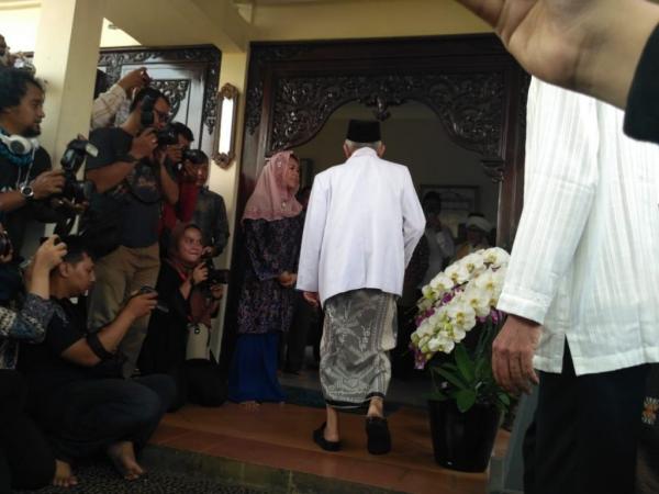 Turun dari mobil Toyota Alphard berwarna hitam, Ma’ruf tampak melempar senyum kepada wartawan. Setibanya di pintu rumah, putri Gus Dur Yenny Wahid langsung menyambut mantan rais aam PBNU itu. “Assalamualaikum,” ucap Ma’ruf.