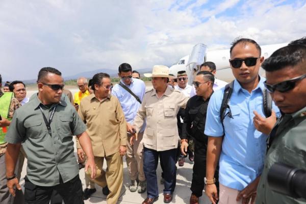 PALU, iNews.id – Calon presiden Prabowo Subianto hari ini berkunjung ke Kota Palu, Provinsi Sulawesi Tengah (Sulteng). Setibanya di Bandar Udara Mutiara SIS al-Jufri Palu, mantan tokoh militer Indonesia itu langsung disambut Gubernur Sulawesi Tengah Longki Djanggola begitu turun dari pesawat.