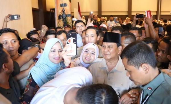 Tak hanya meneriakkan dukungan, para perempuan anggota kelompok relawan Persatuan Emak-Emak Prabowo-Sandi (Permak Bodi) Wilayah Palu itu juga berebut untuk berjabat tangan dengan capres idaman mereka. Prabowo lantas menghampiri dan mengulurkan tangannya bersalaman dengan mereka.