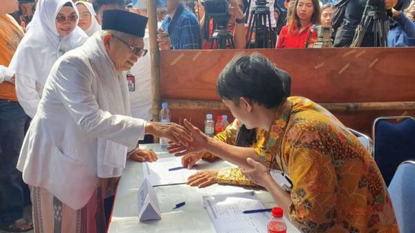 Ma'ruf Amin Didampingi Istri Mencoblos di TPS 051 Koja Jakarta Utara