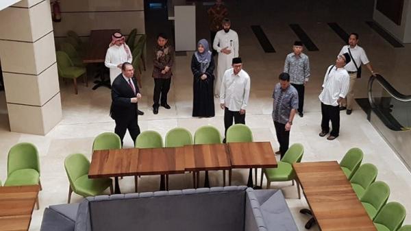 Menteri Agama Lukman Hakim Saifuddin mengecek hotel yang akan ditempati jamaah haji Indonesia di Kota Madinah, Arab Saudi, Kamis (30/5/2019). (Foto: Istimewa).