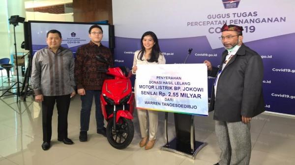 Penggalangan dana tersebut antara lain dilakukan dengan melelang sepeda motor listrik yang ditandatangani Kepala Negara senilai Rp2,55 miliar.