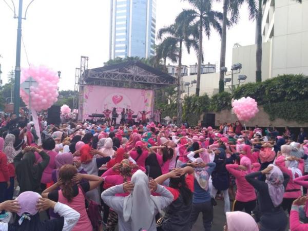 Acara tersebut menyedot antusiasme pengunjung yang sudah hadir sejak pukul 06.00 WIB. Sejumlah peserta menyempatkan diri untuk berfoto bersama. Para ibu yang kompak mengenakan baju merah muda itu penuh semangat mengikuti senam zumba bersama-sama.