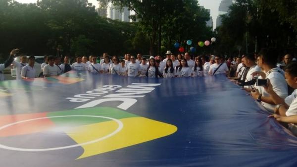 Pembentangan logo MNC Group di acara MNC Fest, HUT ke-30 MNC Group di Parkir Timur Senayan, Jakarta, Minggu (3/11/2019). (Foto: iNews.id/Irfan Ma'ruf).