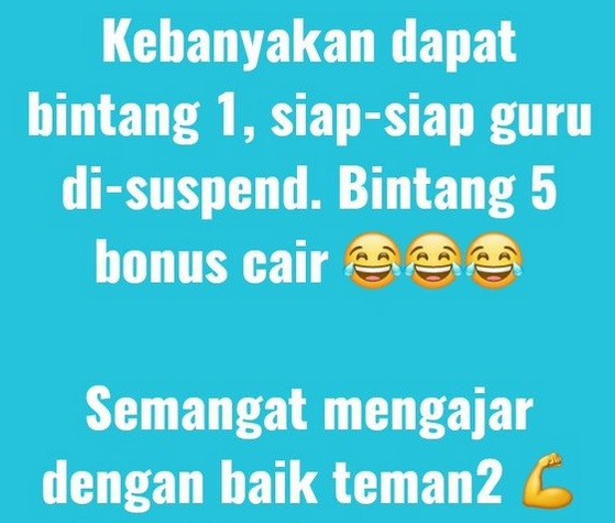"Nanti ada aplikasi guru mirip go-jek. Setiap siswa bisa kasih review bintang. Kebanyakan dapat bintang 1, siap-siap guru di-suspend. Bintang 5 bonus cair," ucap Rodiaman.