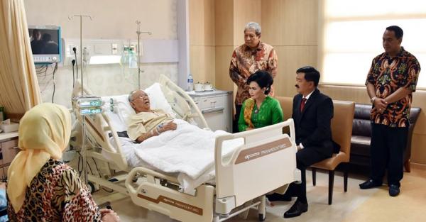 JAKARTA, iNews.id - Panglima TNI Marsekal TNI Hadi Tjahjanto dan Ibu Nanny Hadi Tjahjanto beserta staf membesuk sekaligus bersilaturahmi dengan KH Salahuddin Wahid (Gus Sholah). Pengasuh Pondok Pesantren Tebuireng, Jombang, Jawa Timur, itu sedang dirawat di ruang VVIP Rumah Sakit Pusat Otak Nasional (RSPON), Cawang, Jakarta Timur, Minggu, (4/2/2018) karena sakit.