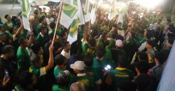 "Takbir! Allahuakbar," teriak kader dan simpatisan PBB di depan Gedung Bawaslu, Jakarta, Minggu (4/3/2018).
