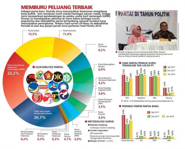 Kemudian gejala politik keempat, yakni soal lima partai lama yang belum aman untuk lolos 4 persen PT. Jika mengacu pada survei LSI Denny JA per Januari 2018, PPP, Nasdem, PAN, PKS, dan Partai Hanura masih dalam posisi belum aman untuk lolos. Perolehan dukungannya rata-rata masih di bawah 4 persen, kecuali Partai Nasdem.