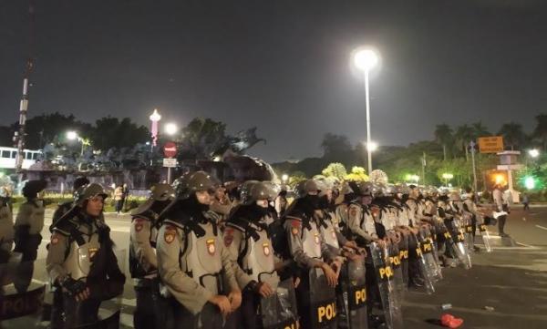 JAKARTA, iNews.id, – Polisi bersiaga penuh di Bundaran Patung Kuda, Jakarta Pusat, menyusul pecahnya kericuhan aksi demonstrasi 22 Mei di depan kantor Bawaslu. Mereka mencegah massa masuk ke Jalan Medan Merdeka Barat.