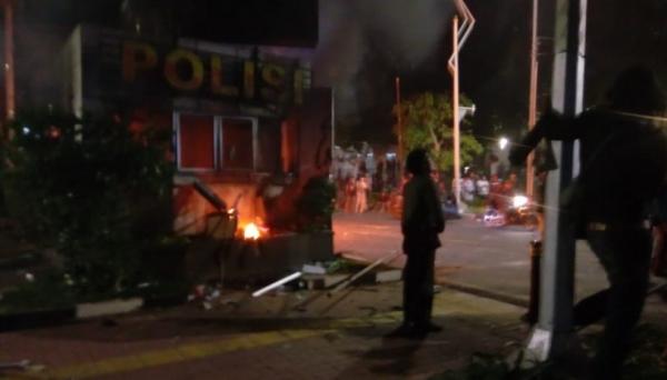 Pos Polisi Senayan Dekat Kemenpora Dibakar Demonstran