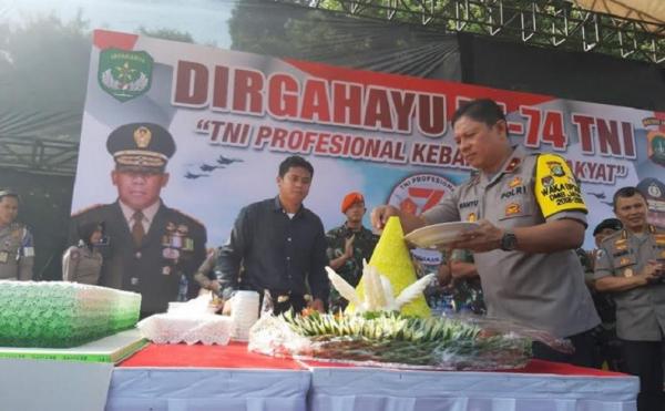 Berdasarkan pantauan iNews.id, rangkaian acara tersebut dibuka dengan pemotongan tumpeng bersama dari jajaran TNI dan Polri. Bahkan, ketika jajaran TNI tengah melaksanakan apel pagi, mereka mendapatkan kejutan kue ulang tahun yang diberikan oleh satuan Brigade Mobil (Brimob) wanita.