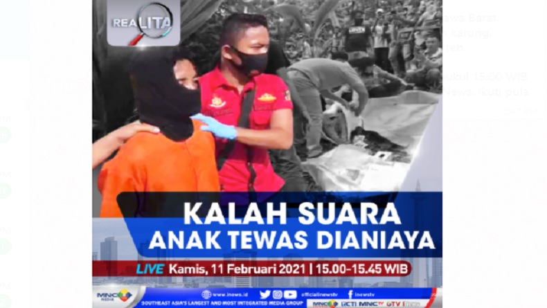 "Realita" Live di iNews dan RCTI+ Kamis Pukul 15.00: Kalah Suara Anak Tewas Dianiaya