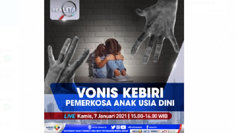 "Realita" Live di iNews dan RCTI+ Kamis Pukul 15.00: Vonis Kebiri Pemerkosa Anak