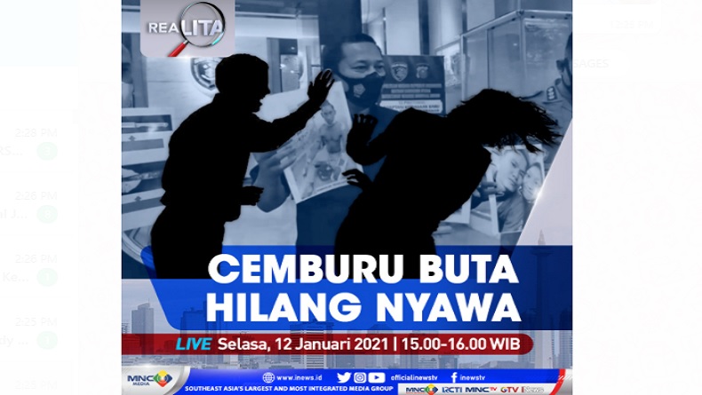"Realita" Live di iNews dan RCTI+ Selasa Pukul 15.00: Cemburu Buta, Hilang Nyawa