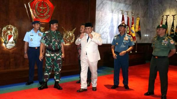 “Terima kasih yang sebesar-besarnya serta selamat datang Bapak Prabowo Subianto yang telah berkenan hadir di Mabes TNI sebagai pejabat baru Menteri Pertahanan RI dalam Kabinet Indonesia Maju tahun 2019-2024," kata Panglima TNI, Rabu (30/10/2019).