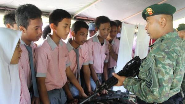 JAKARTA, iNews.id,- Satgas Pamtas Yonif PR 328/DGH TNI AD memberikan penyuluhan kepada pelajar SMAN 6 Skouw Mabo, Distrik Muara Tami, Papua, Kamis (21/2/2019). Selain memberikan wawasan kebangsaan dan cinta Tanah Air kepada generasi muda, juga melaksanakan sosialisasi ke sekolah-sekolah dengan diselingi penyuluhan rekrutmen TNI AD.
