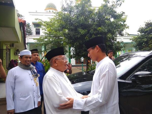JAKARTA, iNews.id – Menjelang pengundian nomor urut pasangan calon presiden (capres) dan calon wakil presiden (cawapres) Pemilu 2019 di Komisi Pemilihan Umum (KPU), malam ini, Sandiaga Salahuddin Uno menyempatkan diri mengunjungi Pondok Pesantren Daarul Rahman yang didirikan KH Syukron Ma'mun.