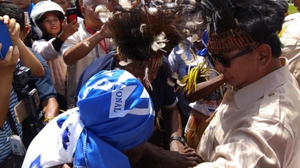 Usai mendapatkan sambutan prosesi adat, Prabowo pun menyampaikan rasa terima kasihnya kepada masyarakat Merauke yang telah menyambutnya dengan sangat ramah dan bersahabat.