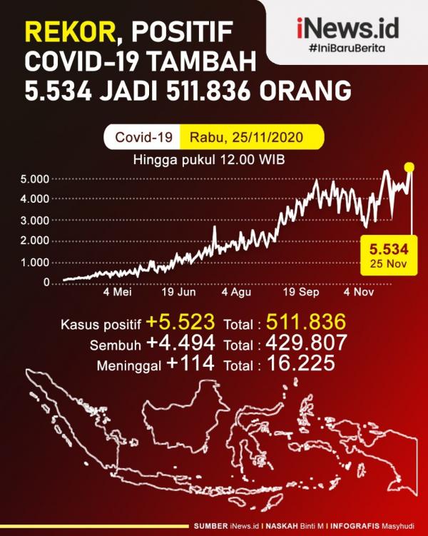 Update 25 November: Rekor Positif Covid-19 Bertambah 5.534 Jadi 511.836 Orang