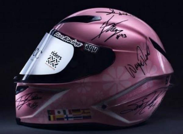 Warna pink dipilih sebagai simbol kampanye melawan kanker. Helm AGV tersebut dibanderol Rp3,8 miliar.